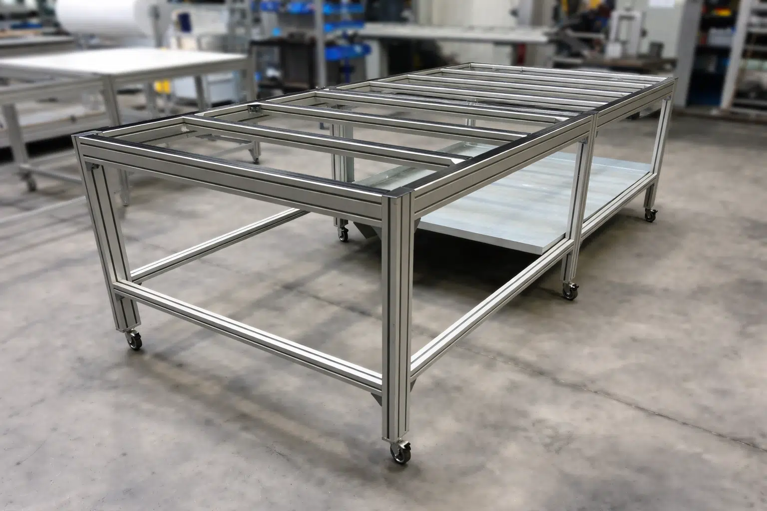 | 🏗️ Robustesse | Structure en profilés aluminium dimensionnée pour assemblages industriels et charges élevées. |