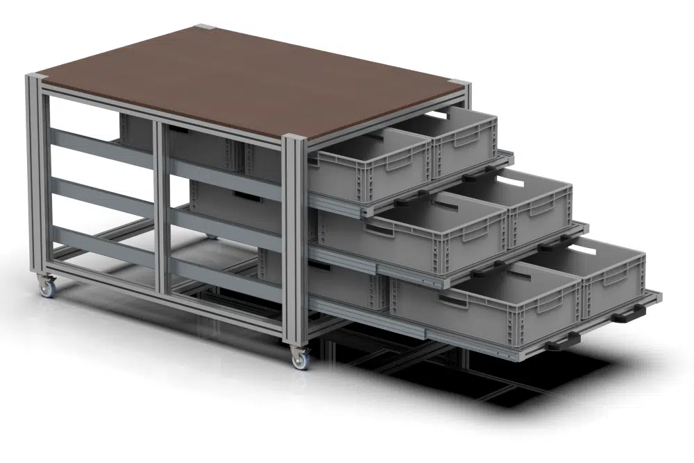 Les caissons à tiroirs rangent de manière sécurisée les éléments nécessaires au processus de montage assemblage.